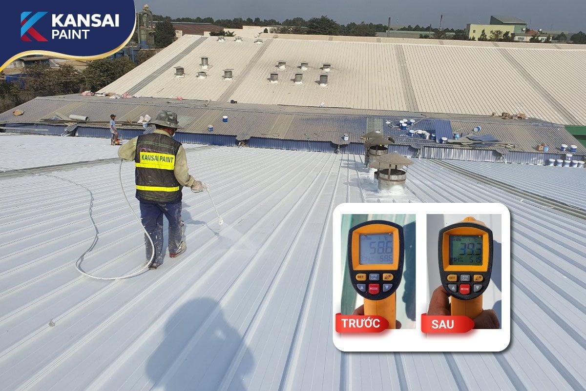 Số liệu thực tế đo được tại dự án sử dụng Sơn giảm nhiệt Heat Reduction Roofcote của Kansai Paint Việt Nam – giúp giảm nhiệt độ bề mặt mái…
